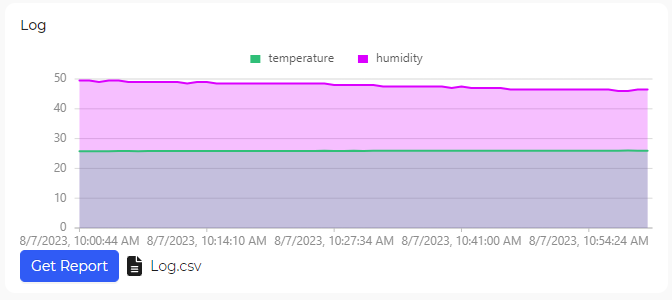 The resulting **Log Chart** widget looks like this: Click on the **Get Report** button to download the historical data as a CSV file.